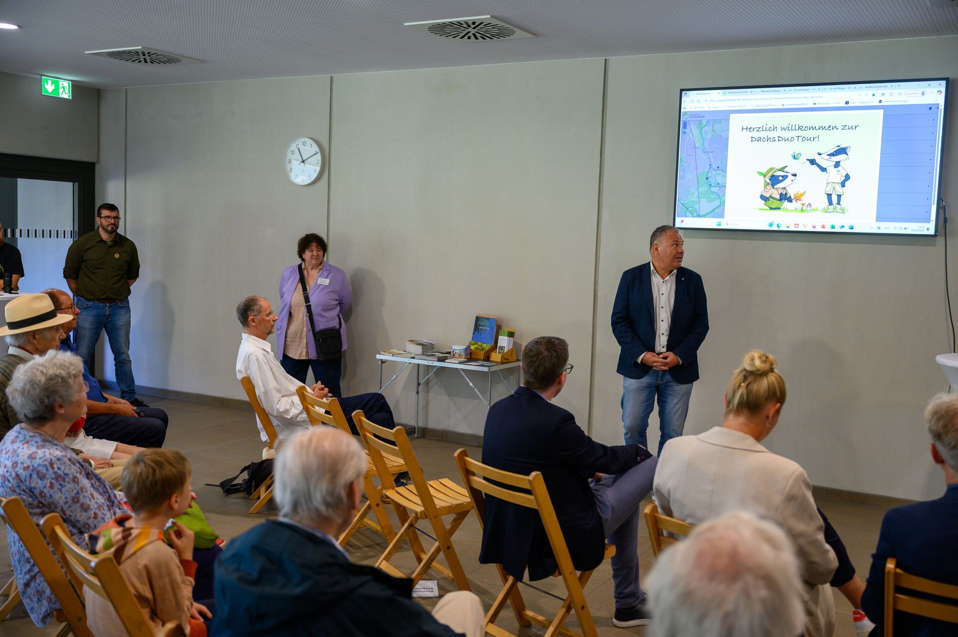 Über 30 Gäste feierten mit der Stadt Leichlingen, der Leichlingen-Stiftung der Kreissparkasse Köln und der Offenland Stiftung die offizielle Eröffnung der DachsDuoTour am 6. September 2025 in der neuen Sporthalle in Leichlingen-Balken. Einen großen Dank an allen, die uns so tatkräftig bei der Umsetzung unterstützt haben!
