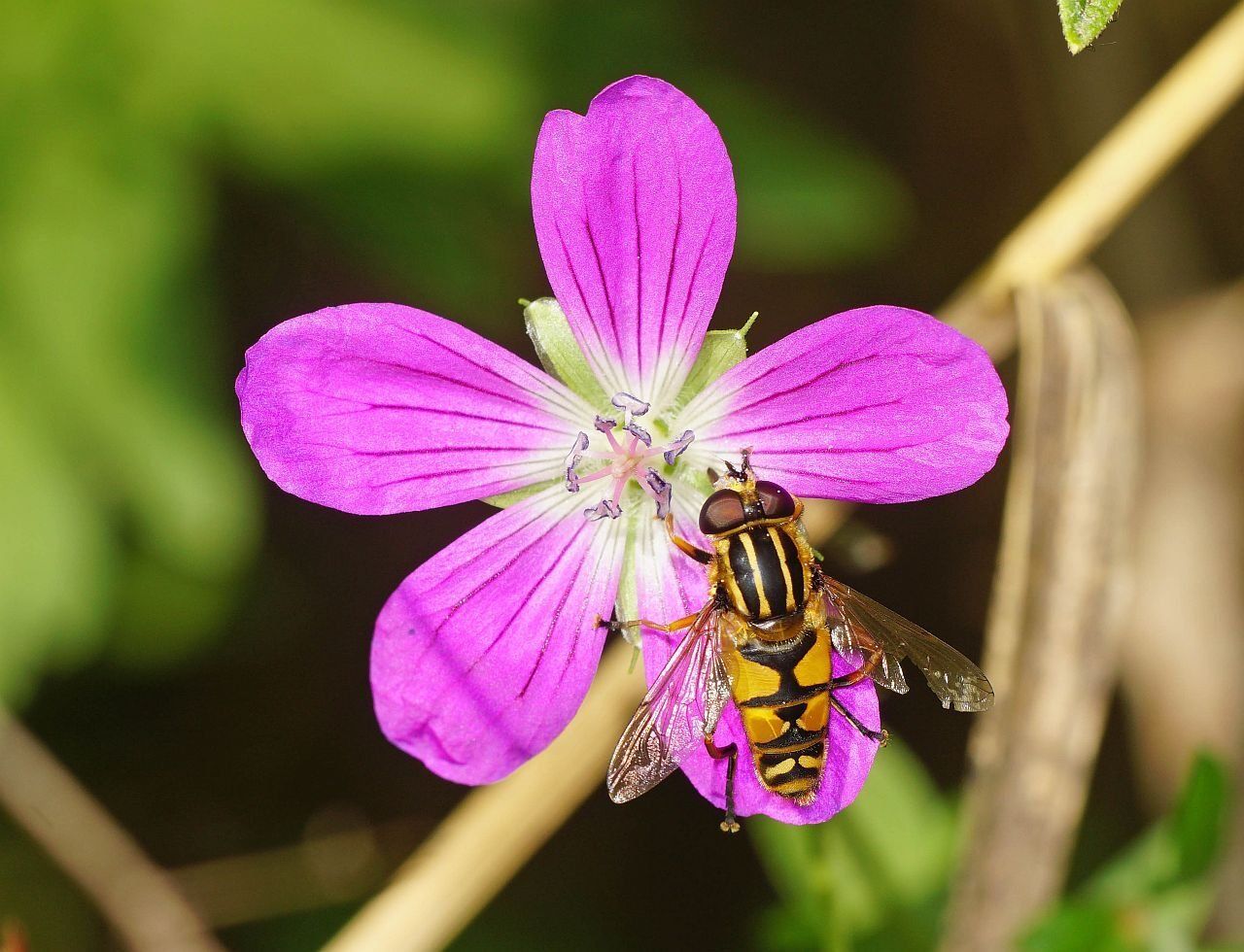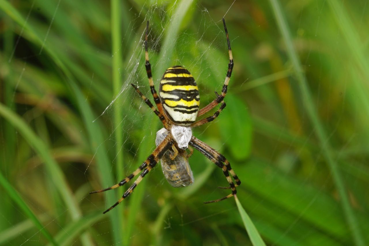 Verschiedene Schwebfliegen in schwarz-gelber Warnfarbe täuschen über ihre tatsächliche Harmlosigkeit hinweg. Aber auch noch echte Wespen wie die Feldwespe und Bienen sind unterwegs. Den vielen spezialisierten Wildbienen bietet Gronenborn vielfältige Lebensräume. Auf diese Insekten lauern natürlich auch noch zahlreiche Spinnen wie veränderliche Krabbenspinne und die wunderschöne Wespenspinne.