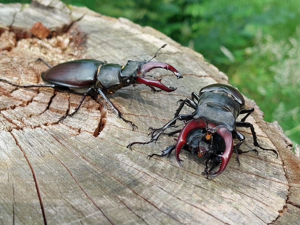Die sehr warmen Abende und Nächte bringen die Hirschkäfer wieder in Schwung. Im Gebiet von Leichlingen-Balken und Murbachtal kann man nun wieder in der Dämmerung diese riesigen Käfer beim Schwärmen beobachten. Vor allem Männchen mit ihren geweihartig vergrößerten Mundwerkzeugen fliegen am Abend entlang der Waldränder in der Nähe alter Eichen auf der Suche nach Futterplätzen (Baumsäfte und überreifes Obst) und natürlich Weibchen. Gerne geben wir Ihnen Hinweise zu Beobachtung und können individuell Beobachtungstermine ausmachen.