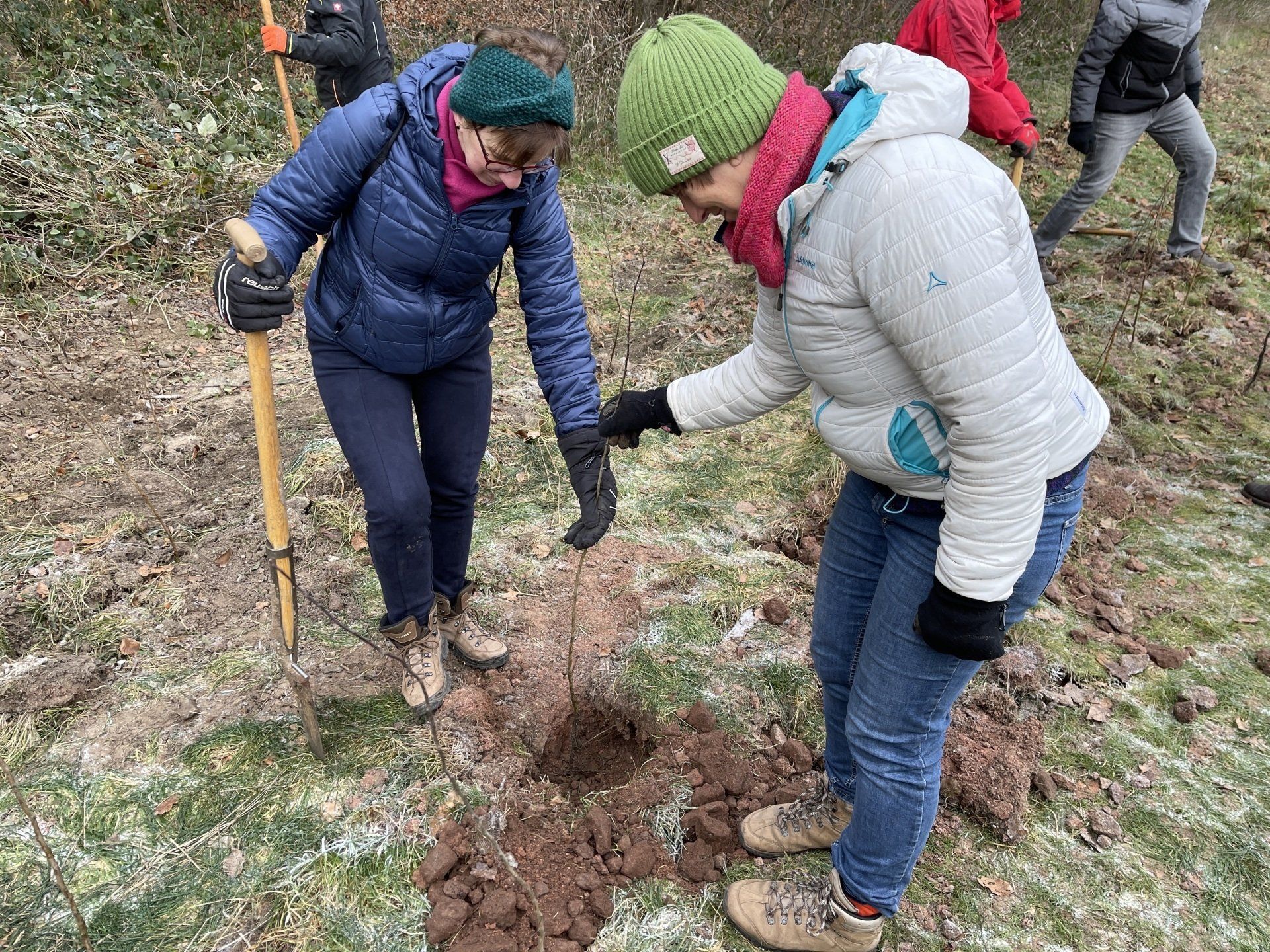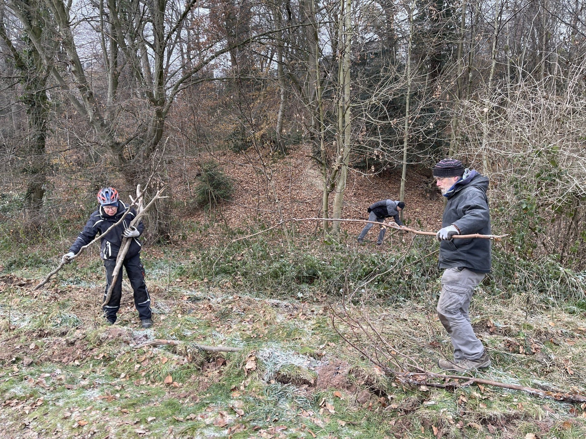 Die Aktion stand unter dem Namen „Tierweihnachten am Waldrand“ und folgte dem schönen Weihnachtsbrauch, Tieren zu Weihnachten Futter in den Wald zu bringen. Anstatt Tiere direkt zu füttern – was ja nur in Notzeiten notwendig ist – wurden typische, einheimische Strauchgehölze des Waldrands gesetzt. 17 Freiwillige, darunter auch die NaturFreunde Leverkusen e. V. und Vertreter der CDU Leverkusen, haben dem diesjährigen Motto der Stiftung „Waldrand“ folgend über 300 Gehölze wie Weißdorn, Hasel, Salweide und Faulbaum gesetzt. Am Ende wurden die jungen Pflanzen mit Totholz eingefasst, um etwas geschützt zu sein. Vorbereitend hatte ein befreundeter Landwirt den Boden entsprechend bearbeitet, dass trotz der kalten Temperaturen die Pflanzaktion durchgeführt werden konnte. Im Anschluss an die Pflanzaktion hatte das Waldhaus Römer die fleißigen Ehrenämtler zu einer wärmenden Suppe geladen.